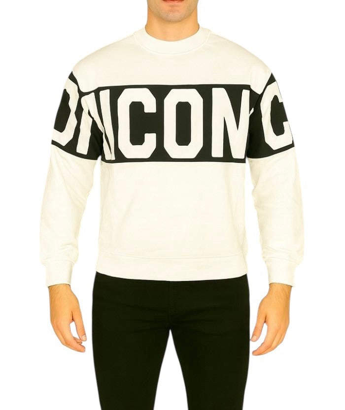 Felpa girocollo realizzata in pregiato misto cotone che garantisce comfort e durabilità nel tempo. Il design è caratterizzato da una maxi stampa nera del logo che si estende su fronte e maniche, creando un contrasto visivo deciso e riconoscibile. La vestibilità comoda la rende ideale per chi ricerca praticità senza compromessi stilistici. Polsini e fondo a costine assicurano una tenuta perfetta e un'estetica raffinata. Versatile e contemporanea, si adatta perfettamente a uno stile streetwear e urban, rappresentando una scelta consapevole per chi apprezza qualità costruttiva e design essenziale.
